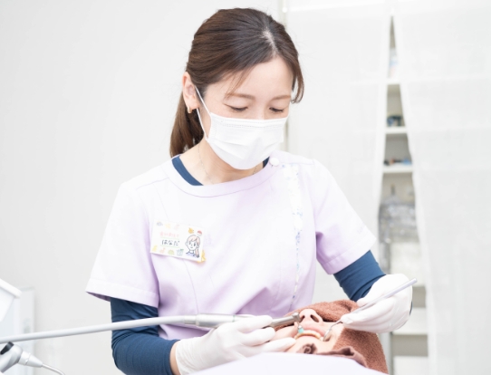 歯周病は自覚症状なく進行していく病気でもあるため、まずは歯周病の有無や進行状況を定期的にチェックすることがとても重要です。メインテナンスに来ていただき口腔内の状態を確認するとともに、歯磨き指導もしっかり行います。