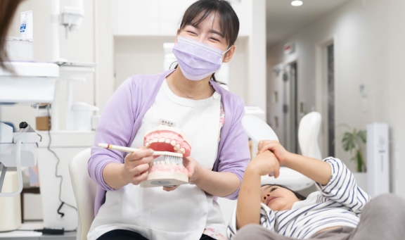 お子さま自身で歯磨きをしている場合はお子さまがどのように歯磨きをしているのかをチェックし、磨き癖や間違った磨き方を修正しながら、一人できれいに磨けるよう丁寧に指導していきます。
