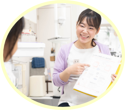 お口の中は一人ひとり違うため磨きにくいところや歯ブラシが当てづらいところなども人によって違います。実際に患者さまの歯磨きの仕方を見せていただき磨き癖や歯ブラシの当て方をお伝えします。